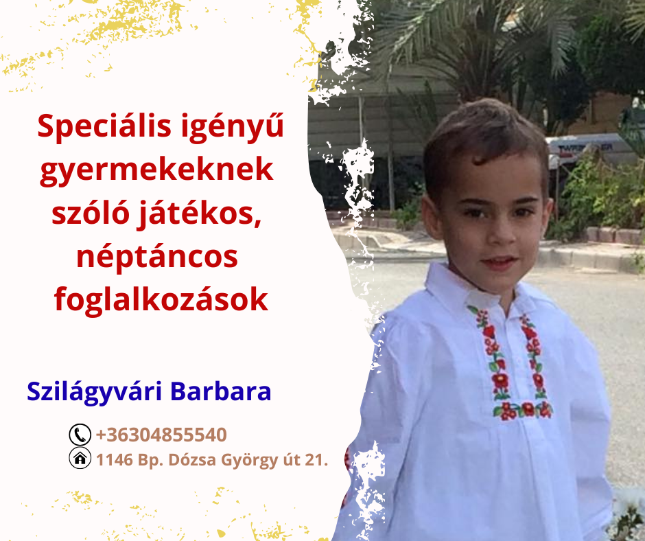 Örömmel hívjuk gyermeküket speciális igényű gyerekeknek szóló néptánc foglalkozásunkra, ahol a mozgás, a zene és a játék öröme találkozik.